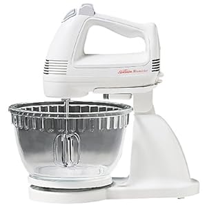 Power within the palm of your hand. This distinctive mixer mixs the steadiness of a stand mixer with the handy, compact energy of a hand mixer. Featuring six velocitys, 200 watts and a handy Burst of Power function, it makes fast work of almost any mixing job. One-touch beater ejection makes cleanup fast and straightforward. Includes pair of chrome beaters, pair of dough hooks and a pitcher bowl. Covered through a two-year warranty. Model # 2372.